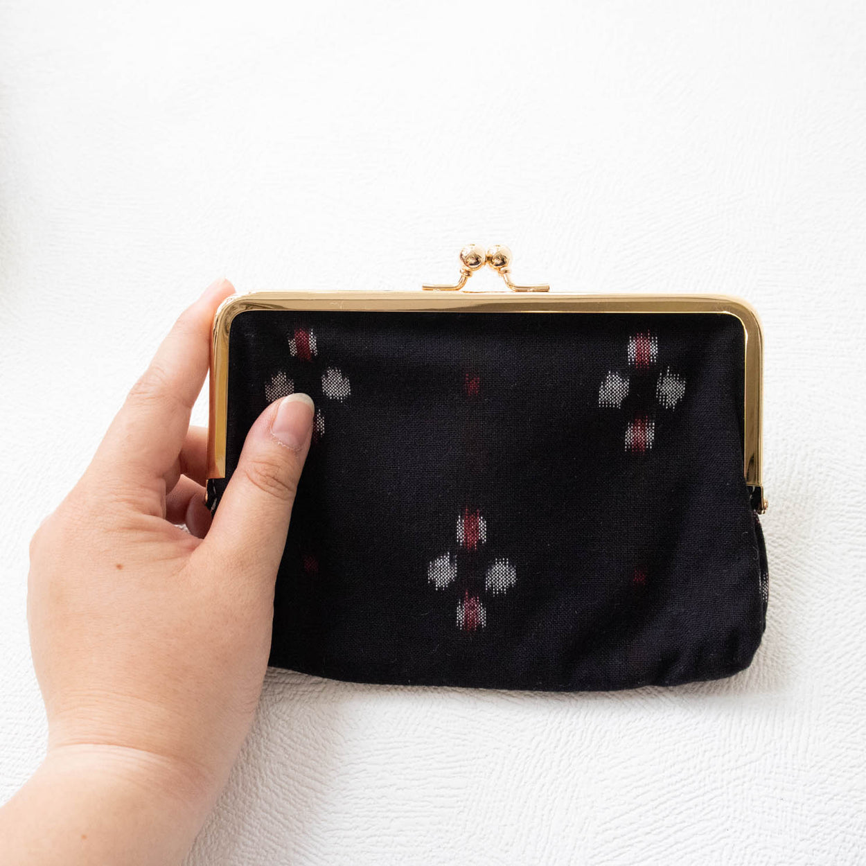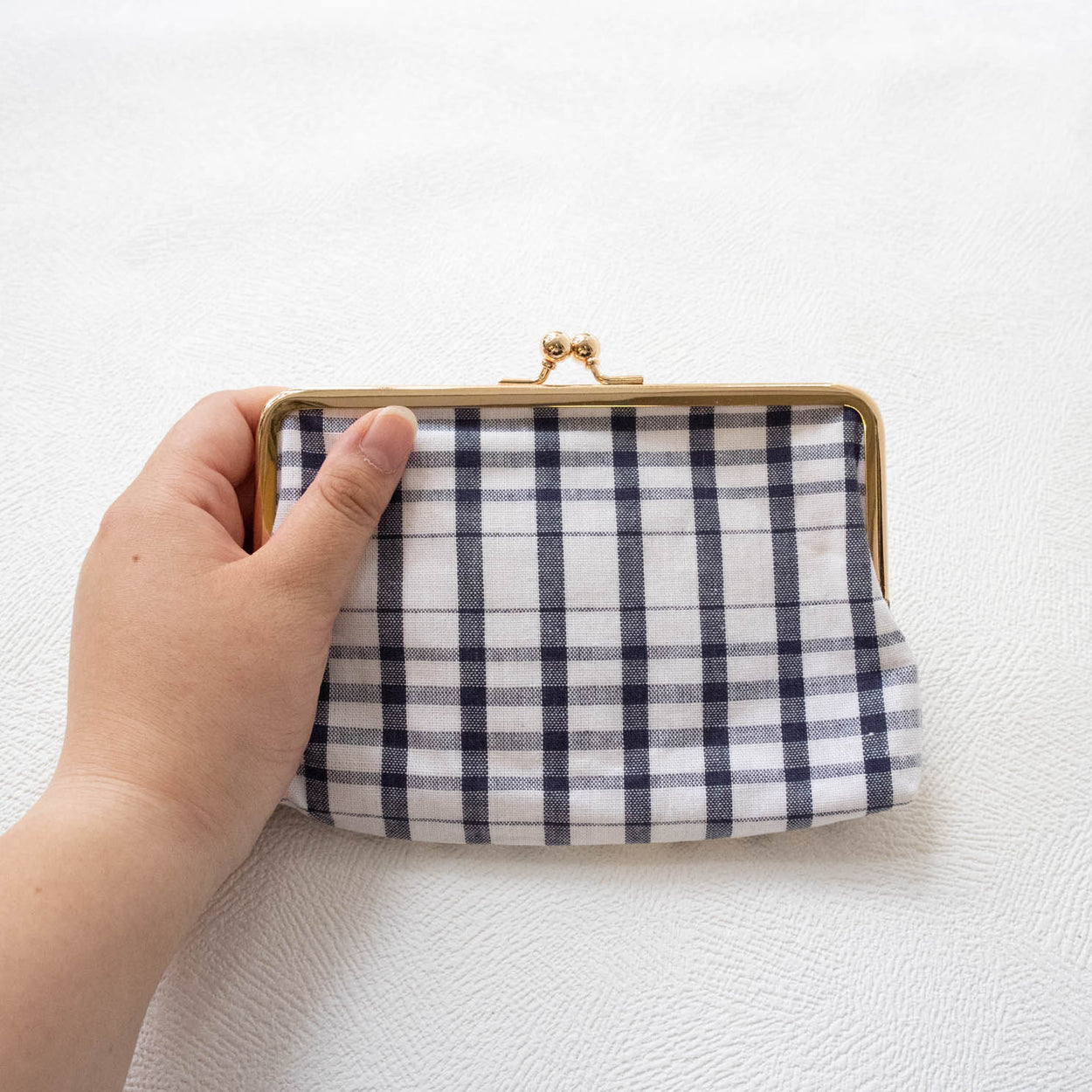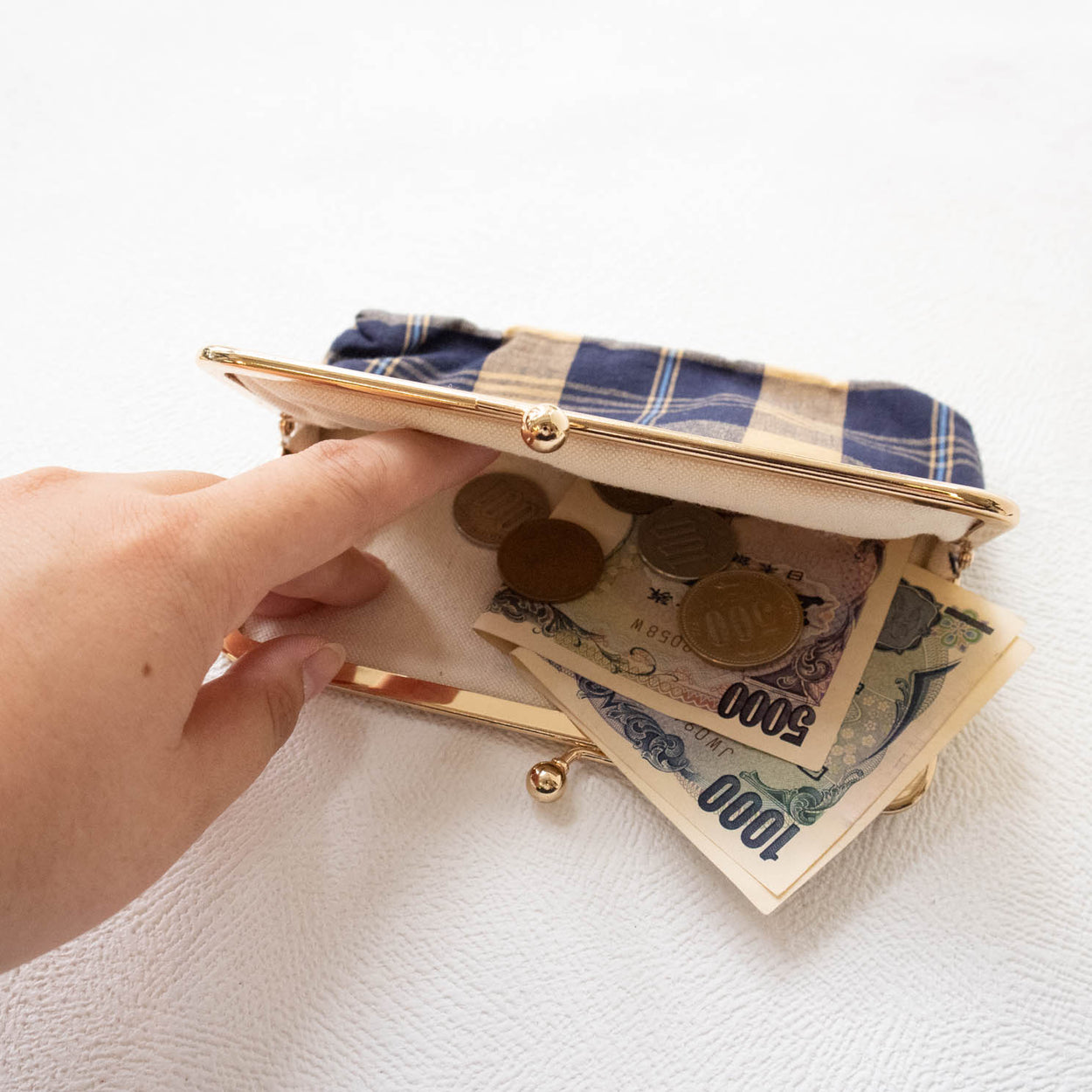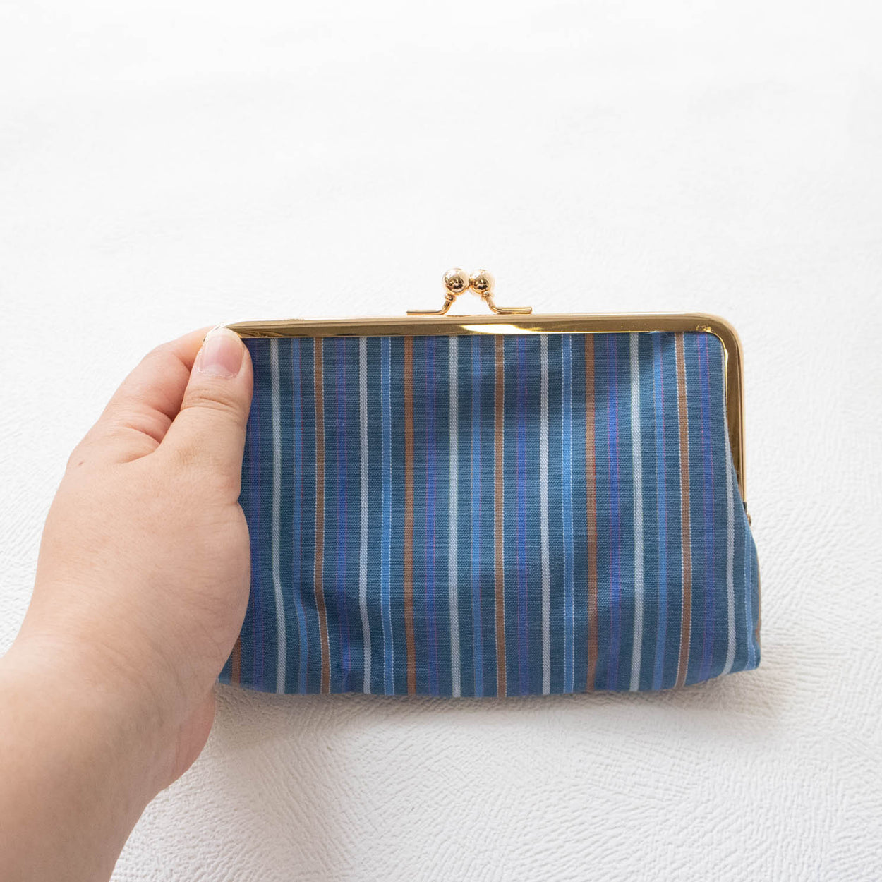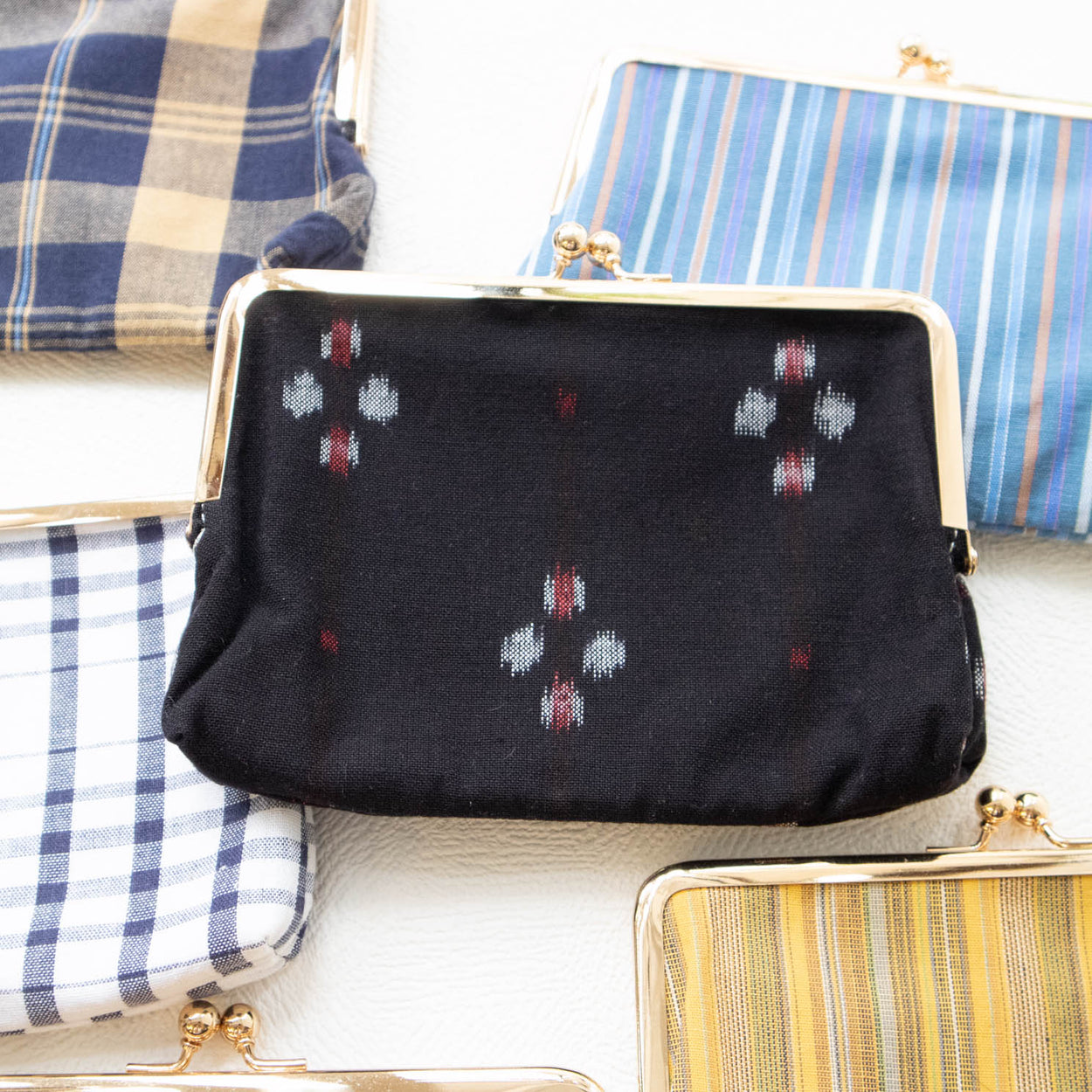 伊勢木綿の優しい風合い。大きめがま口ポーチです。