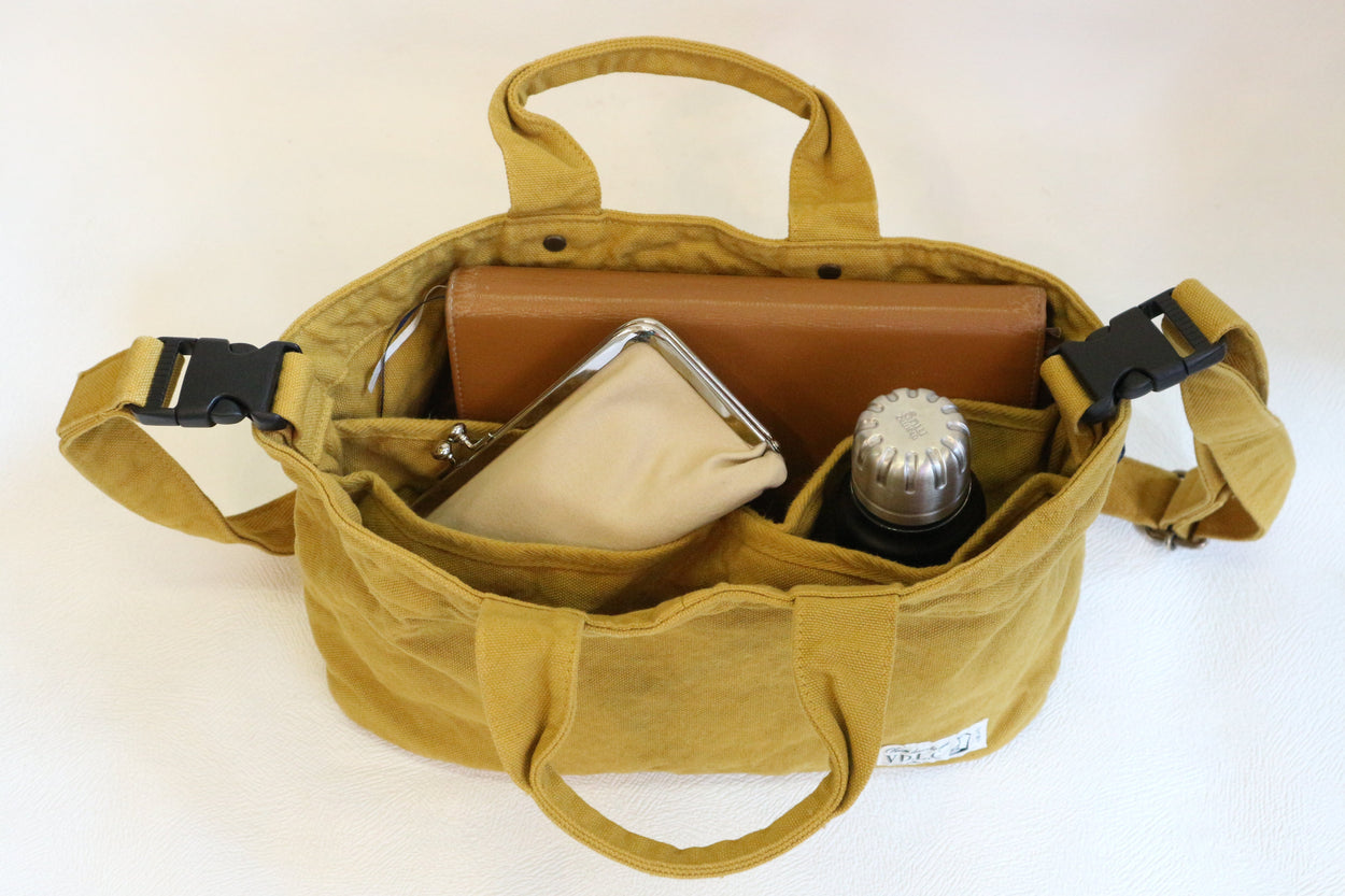 ショルダーバッグとしても、仕切りが多くて使いやすい形と大きさです。