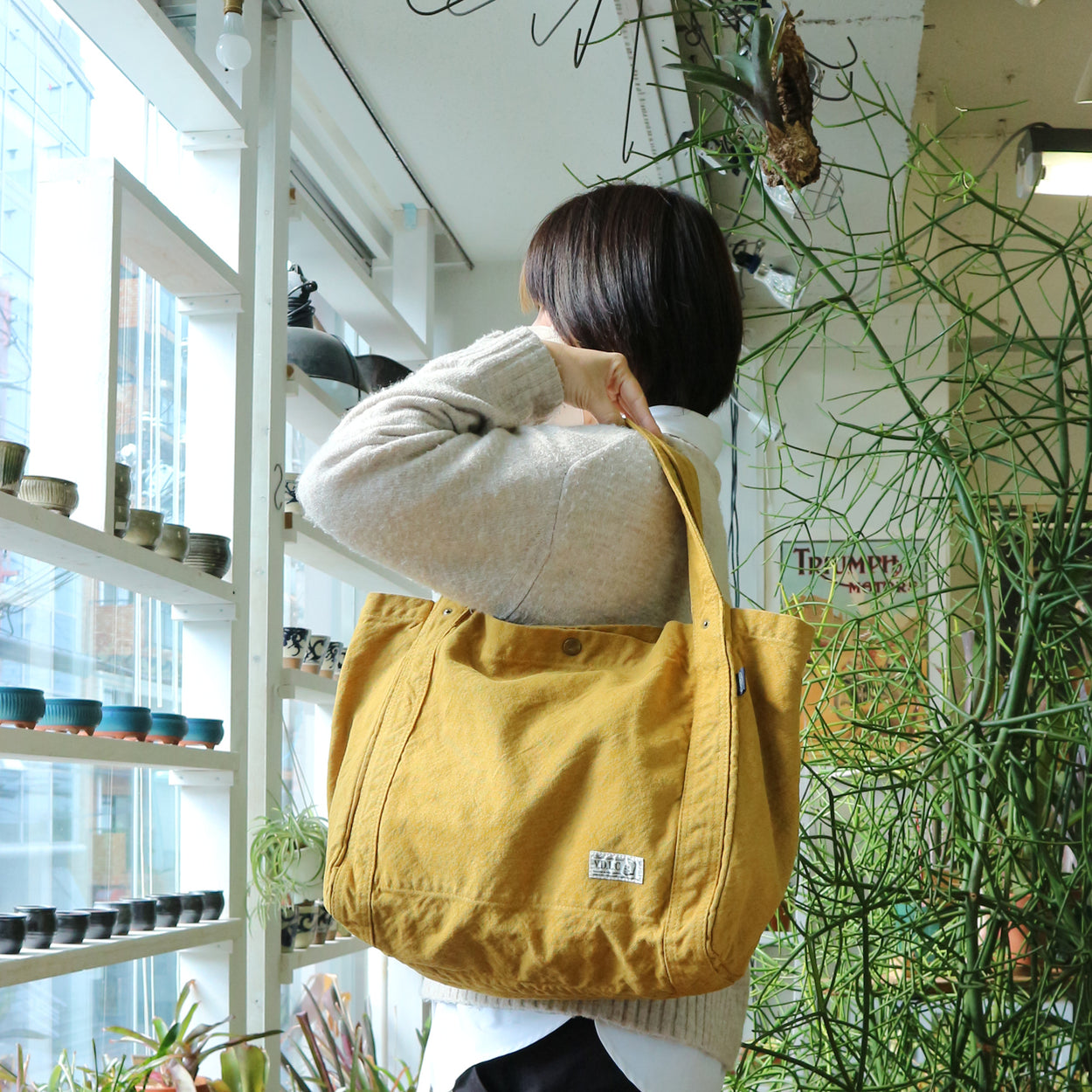 オーソドックスな形のトートバッグ。丸く縫い留めた持ち手は丈夫で手になじみます。口が広く荷物の出し入れがしやすく、マチもたっぷりでA4サイズも余裕で入ります。軽くて使いやすい大容量のショルダーバッグです。