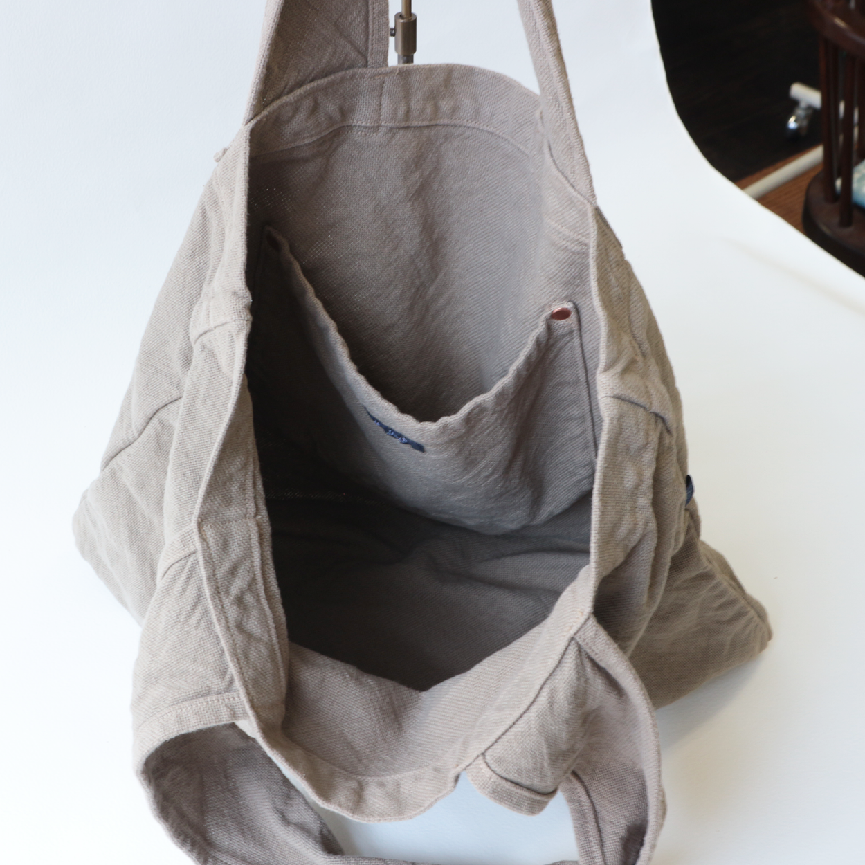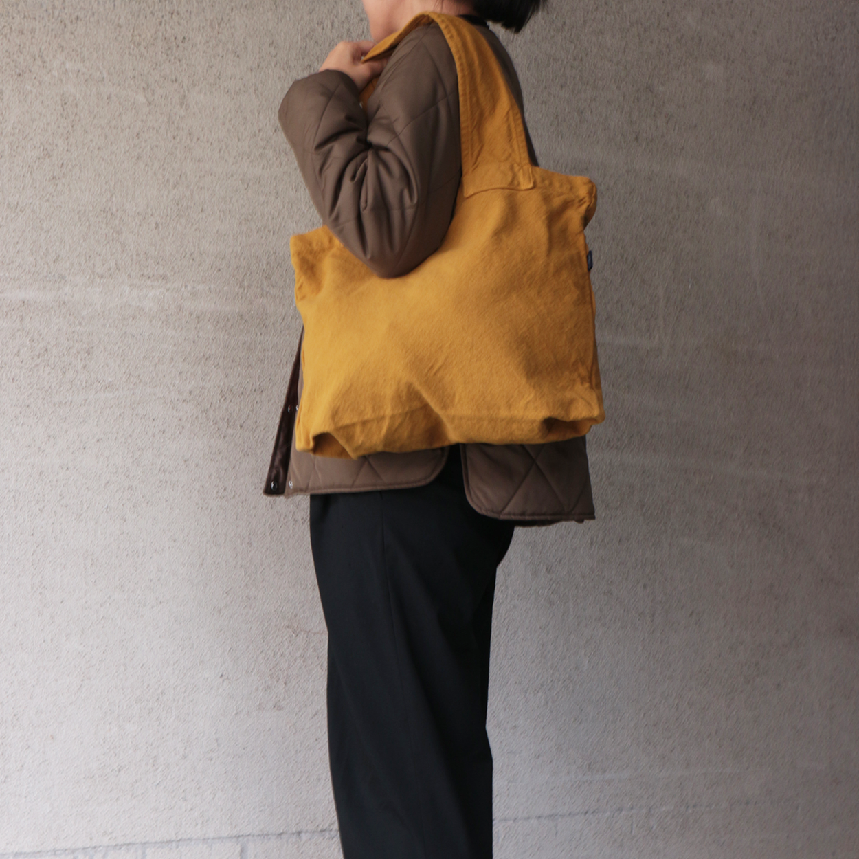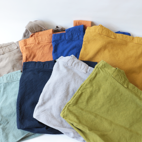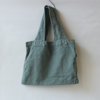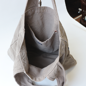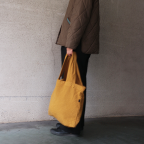 お手軽でシンプルなデザインのバッグです。通常より軽くざっくりと織られた帆布生地は染色することでで生地がほどよく引き締まり、くったりとした柔らかな風合いが楽しめます。アクセントにもなる太めのショルダーストラップは、肩に食い込みにくく、重くなりがちな日常のお買い物やお出かけにも便利にお使いいただけます。