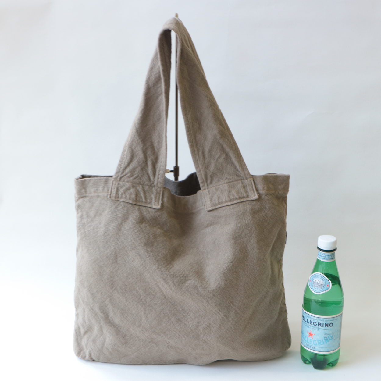 買い物を続ける通常より軽くざっくり織られた帆布生地を使用したシンプルなデザインのトートバッグです。