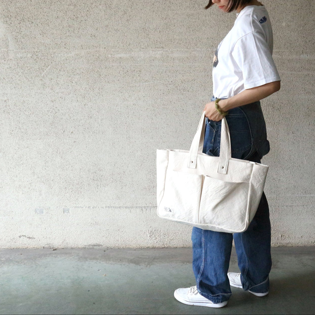 前面の二つのポケットが特徴の四角いカバン。ジップで開閉でき、A4サイズも楽々入る機能的なバッグです。手提げでもショルダーでも持ちやすく、十分なマチがあり、四角い安定感のあるシルエット。【2023年秋にリニューアルしました】