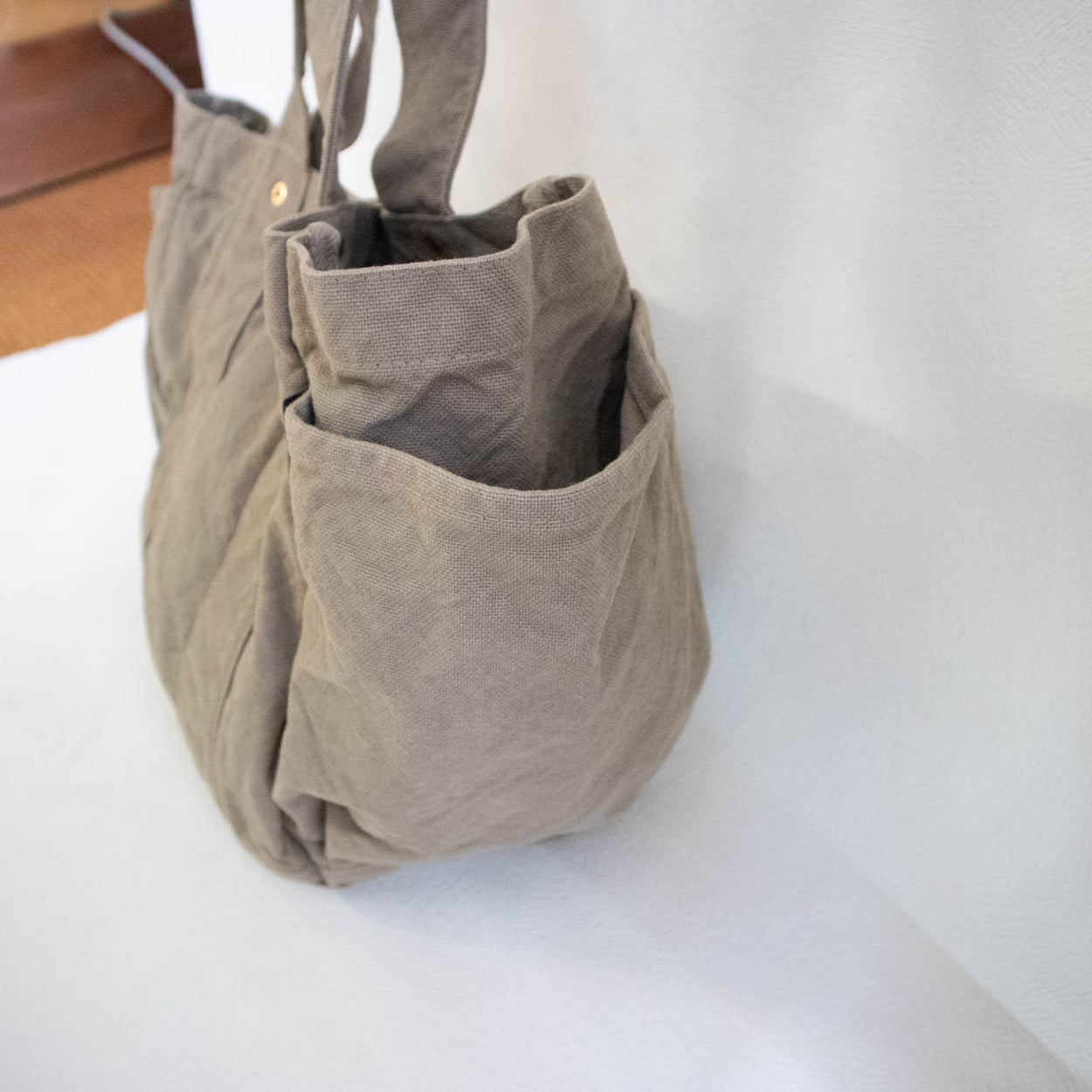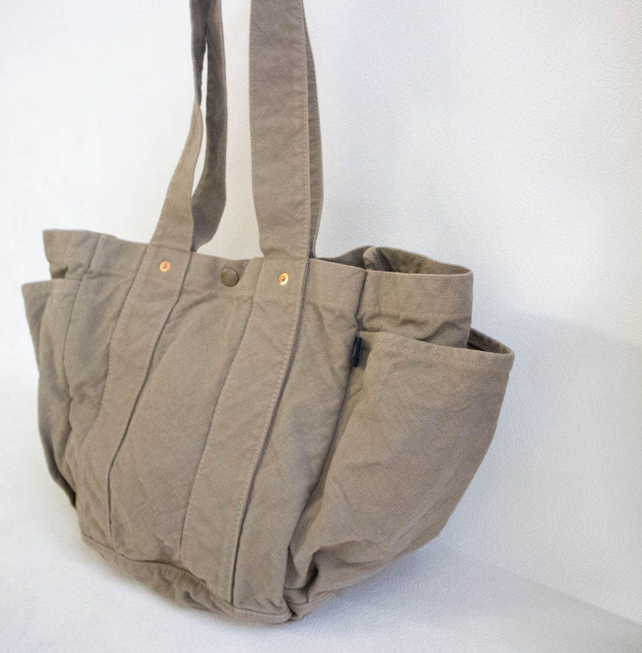 持ち手が長く、肩掛けにピッタリ。両サイドについたポケットはペットボトルも楽々収納できてマチもしっかりあります。内ポケットも充実しており子育てライフにも活躍してくれます。V.D.L.C.のバッグは全品洗濯機で丸洗いが可能です。