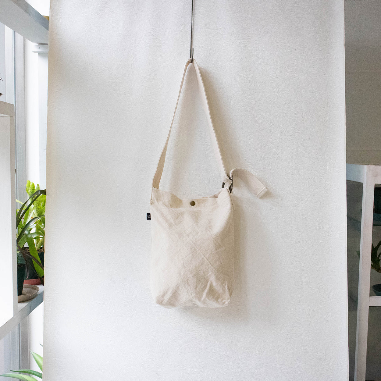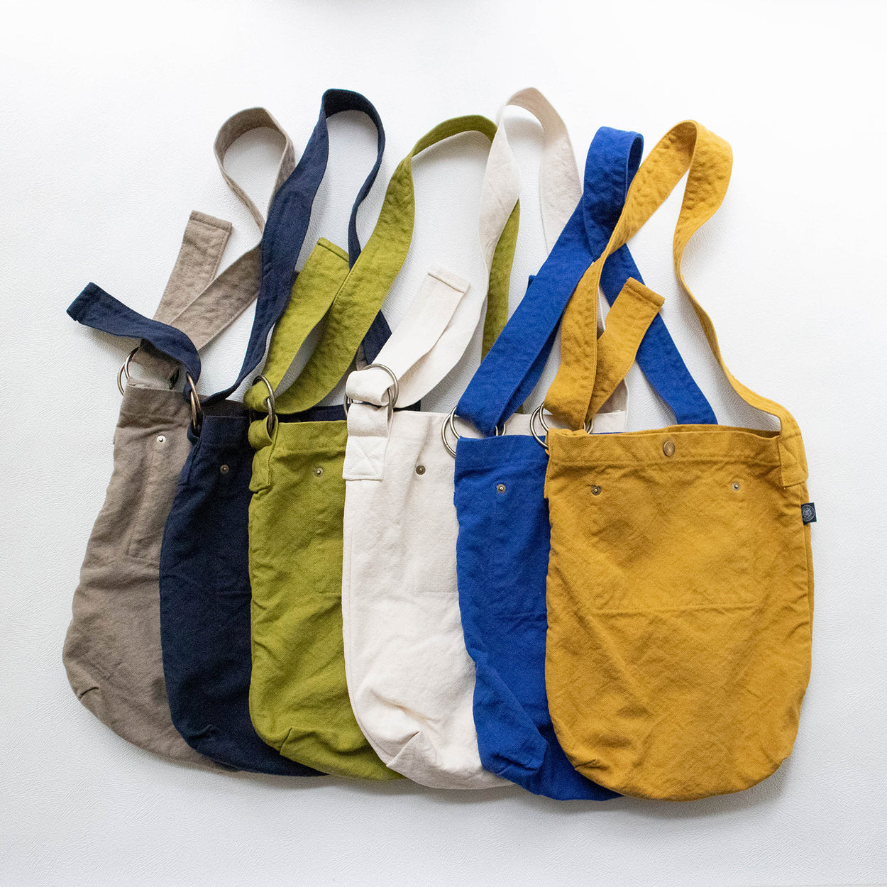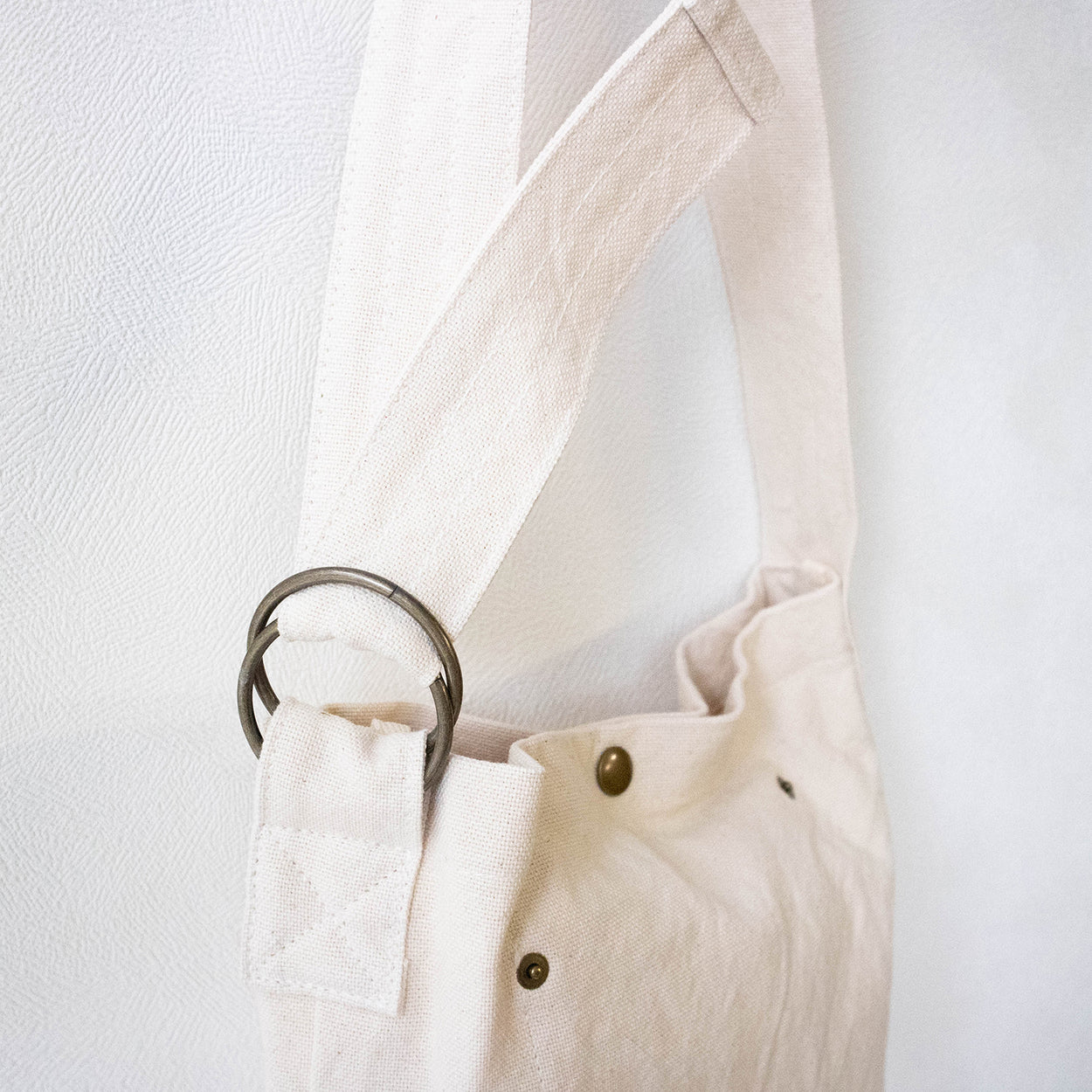 ショルダー調節用の、大きなリングがアクセント。A4サイズがぴったり入る、シンプルでカジュアルな使いやすいカバンです。