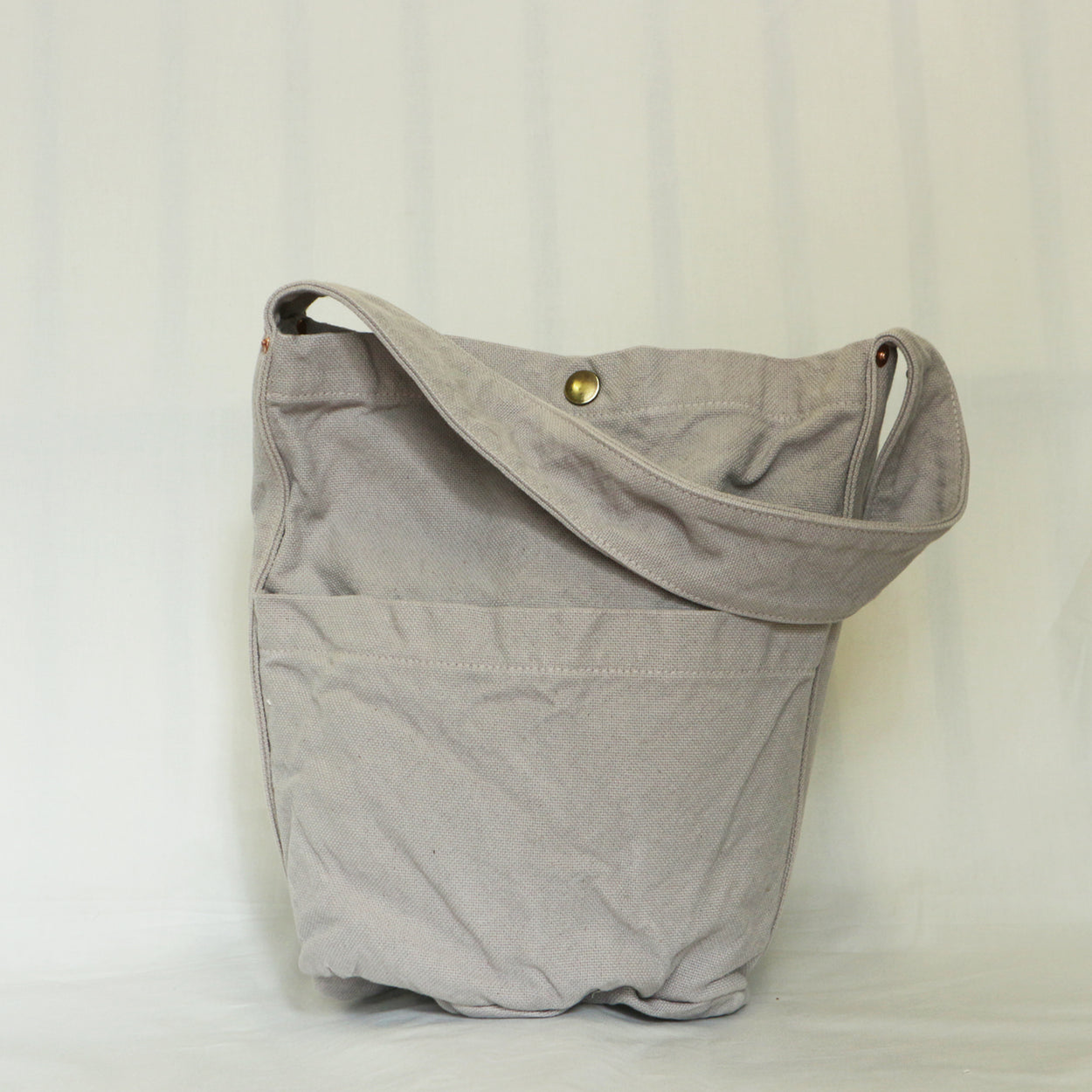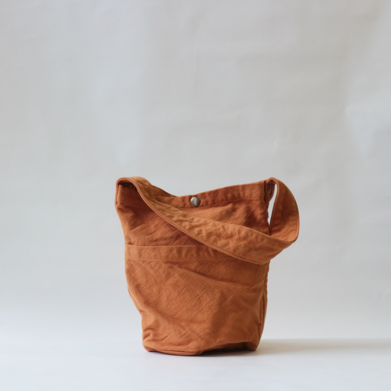 バケツ型の、丸い底のシルエットがかわいらしい小さめのバッグ。肩が痛くならない太めのショルダー紐を採用。収納力があってコロンとした使いやすいバッグです。