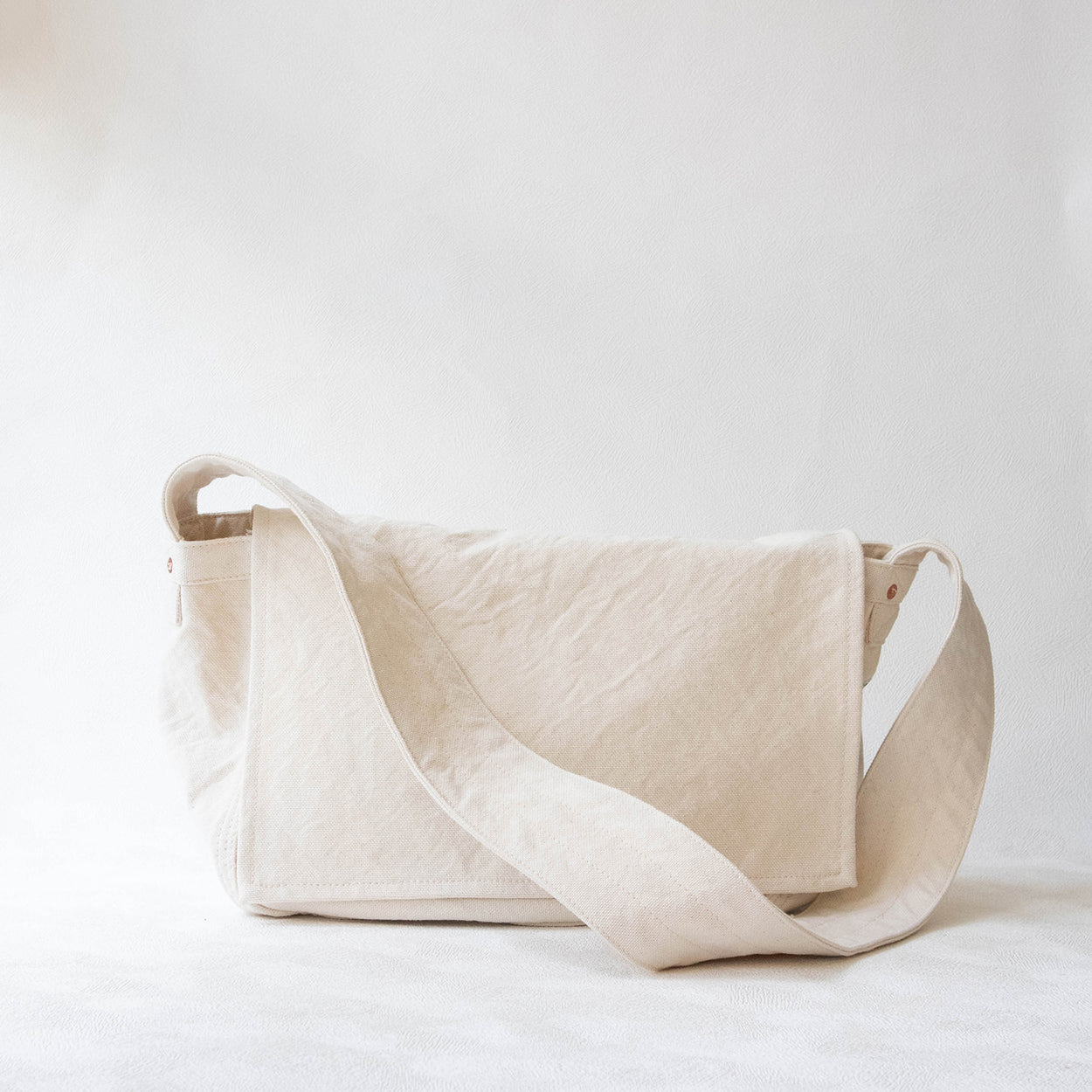 欧米の新聞配達員のカバンをモチーフにした、柔らかな手触りのニュースペーパーバッグ。幅の広い肩ひもで負担を軽減します。サイズ展開はS・M・Ⅼの3種類。マチをたっぷりとった大容量のバッグです。