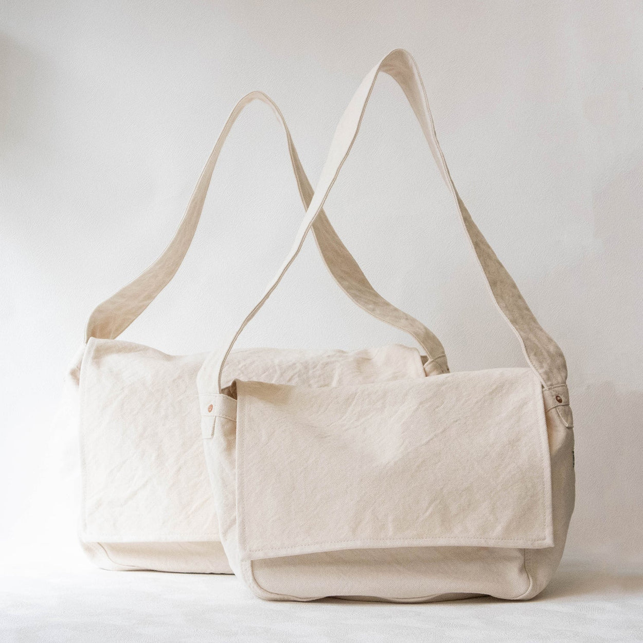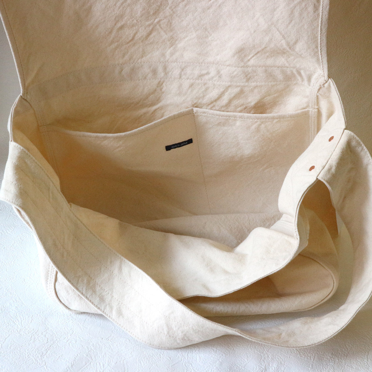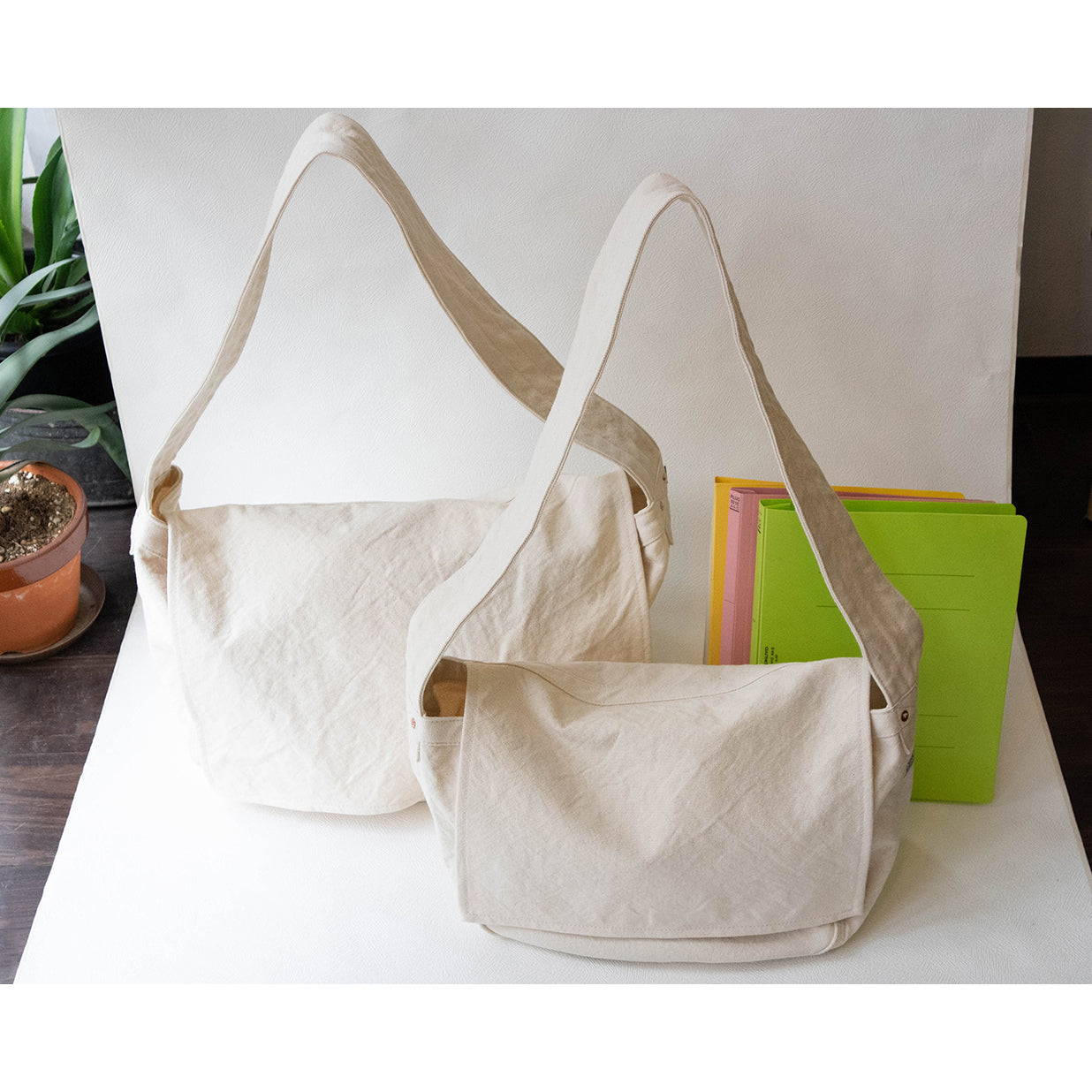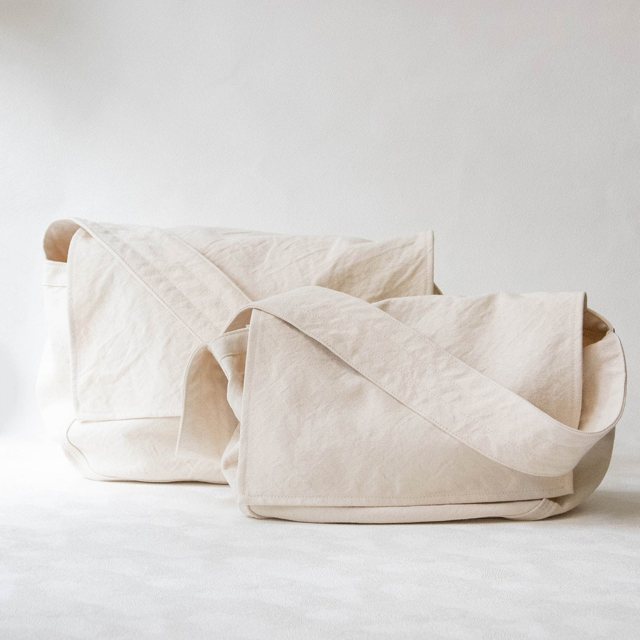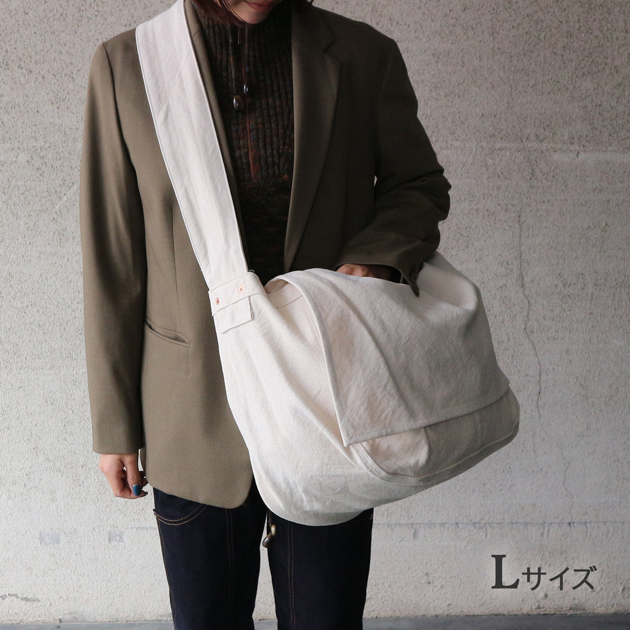 欧米の新聞配員のカバンをモチーフにした、柔らかな手触りのニュースペーパーバッグ。幅の広い肩ひもで負担を軽減します。サイズ展開はM・Ⅼの2種類。マチをたっぷりとった大容量のバッグです。
