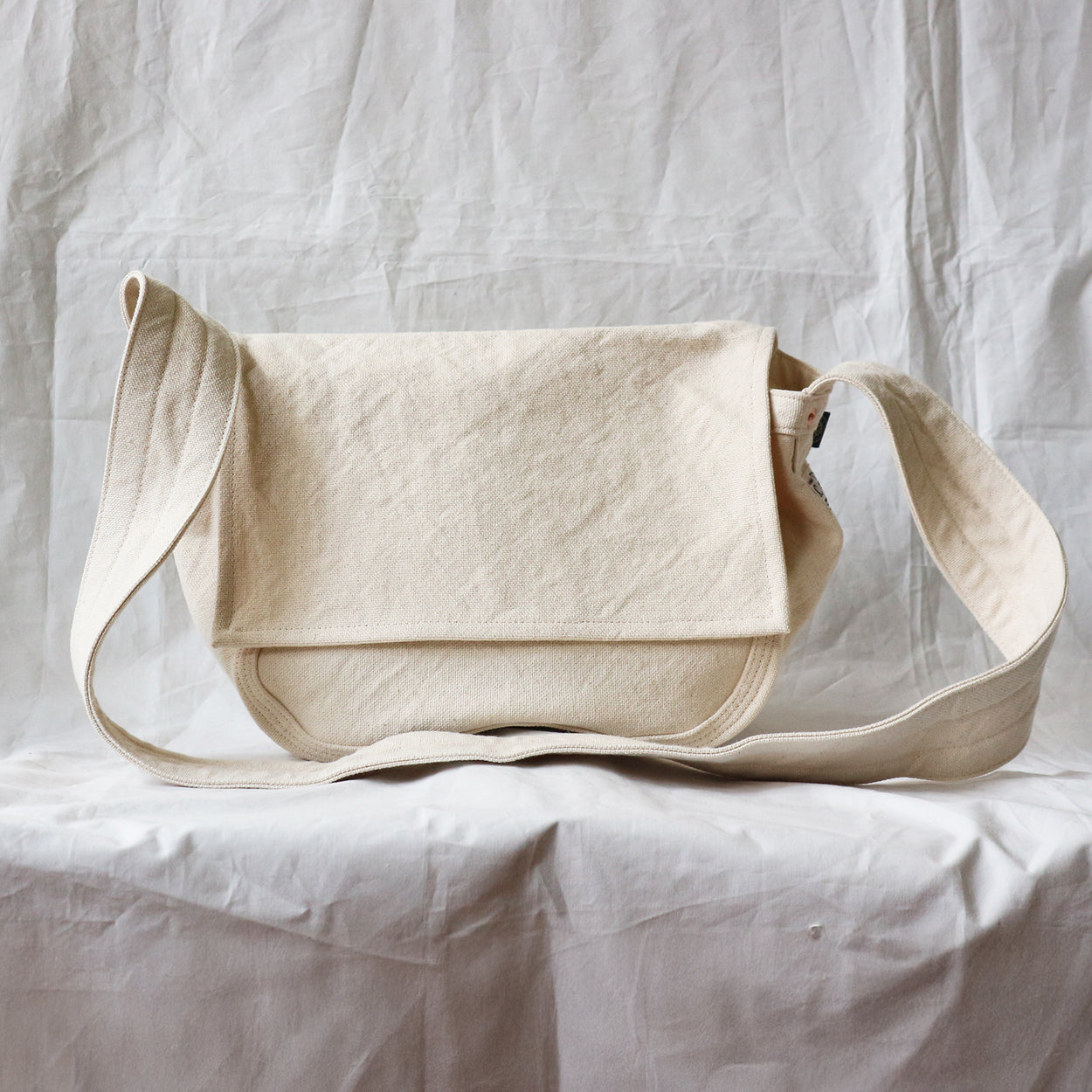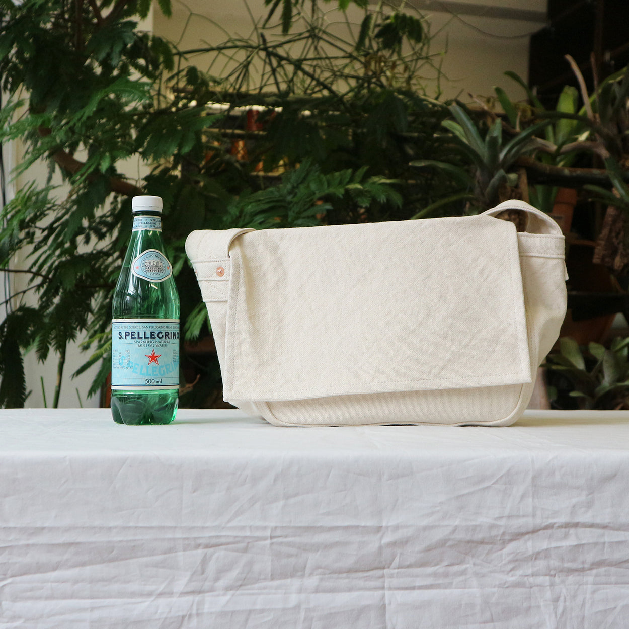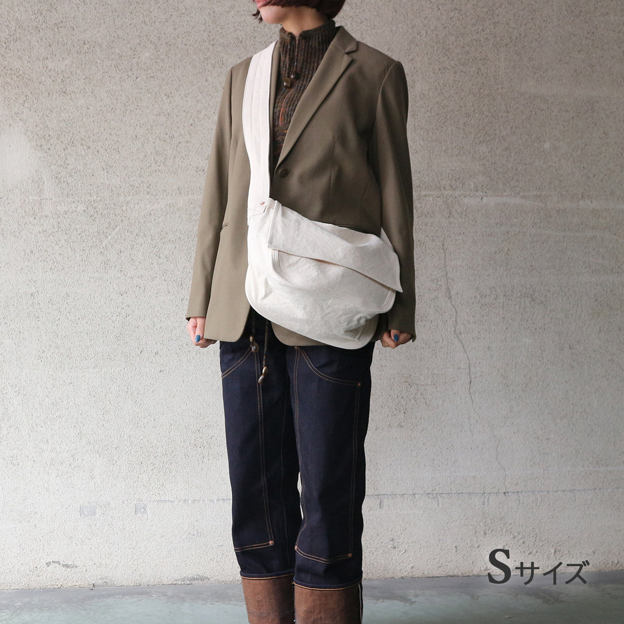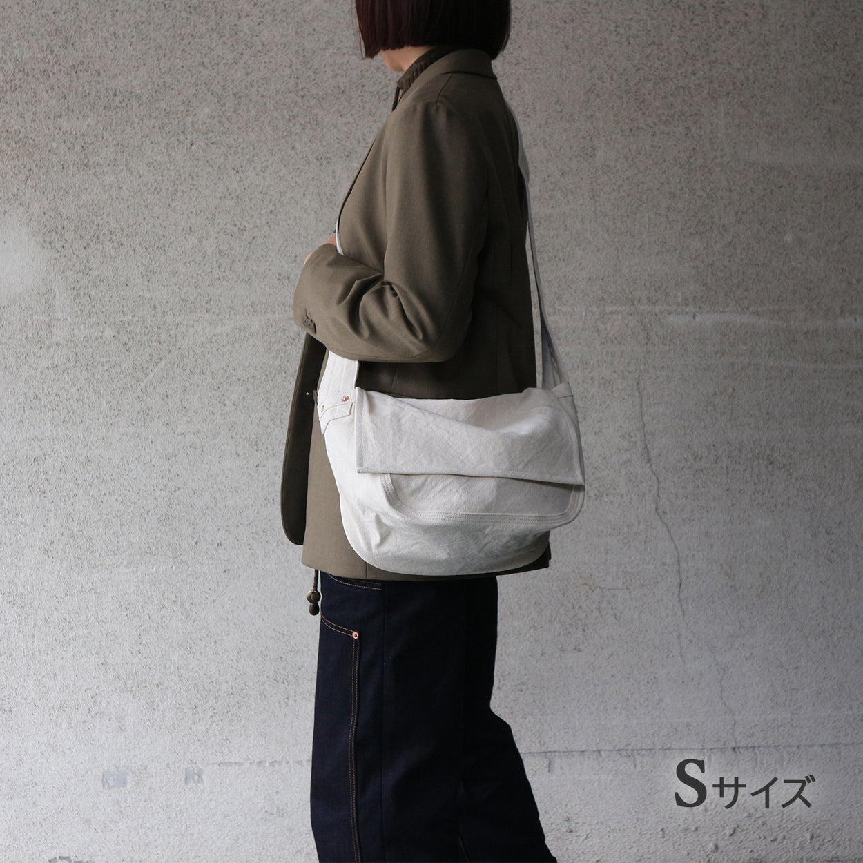 Sサイズが新登場しました。欧米の新聞配員のカバンをモチーフにしたニュースペーパーバッグのデザインはそのままに、ちょっとしたお出かけにも使いやすいサイズに仕上がりました。幅の広い肩ひもで負担を軽減します。柔らかな手触りのマチをたっぷりとったバッグです。